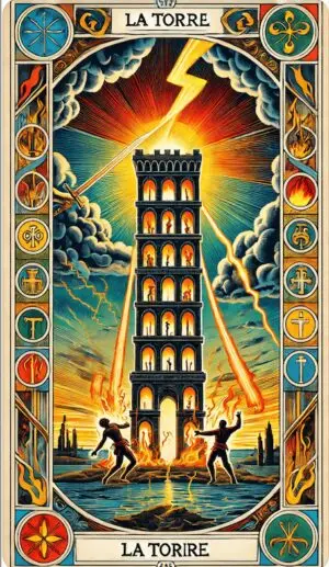 La Torre representa la destrucción de estructuras antiguas y la necesidad de un cambio drástico. Es una carta que habla de eventos inesperados, revelaciones y, a menudo, de crisis que conducen a un nuevo comienzo.